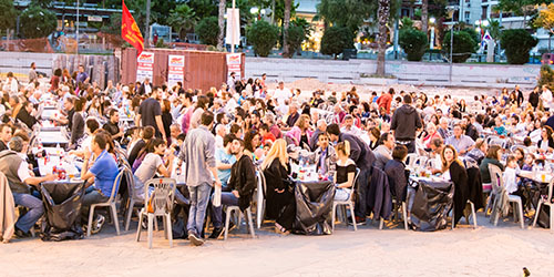 Το φθηνό, αλλά προετοιμασμένο με ιδιαίτερη φροντίδα φαγητό από τους επισιτιστές σε ένα όμορφο περιβάλλον που έστησαν οι οικοδόμοι, με την συμβολή των εργαζομένων στις τράπεζες και στην ενέργεια, δείχνει ότι τα ταξικά σωματεία μπορούν να είναι πρωτοπόρα όχι μόνο στον αγώνα, αλλά και στον πολιτισμό.