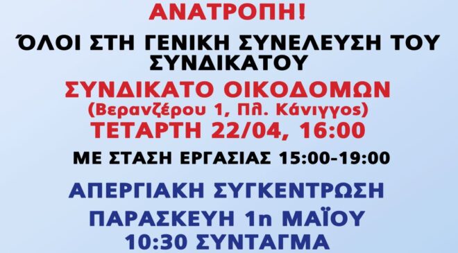 - 1η ΜΑΗ 2026 - ΑΠΕΡΓΙΑ: Καμιά θυσία για τον πόλεμο & τα κέρδη τους - Οργάνωση κι αγώνας για την ανατροπή - Όλοι & όλες στην απεργιακή συγκέντρωση στις10:30 στο Σύνταγμα