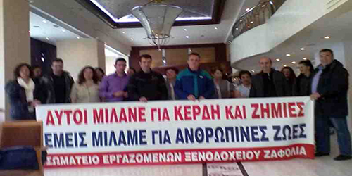 «Επειδή λοιπόν ακόμα μια φορά αποδεικνύεται ότι η πραγματικότητα των εργοδοτών και η πραγματικότητα η δική μας δεν έχουν καμιά κοινή συνισταμένη, καλούμε όλο το προσωπικό του ξενοδοχείου, με όποια σχέση εργασίας και αν απασχολείται, σε Έκτακτη Γενική Συνέλευση τη Δευτέρα 6/4 στις 15:30 να συναποφασίσουμε τον τρόπο με τον οποίο θα διεκδικήσουμε τα δίκαια αιτήματά μας».