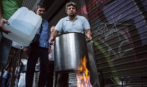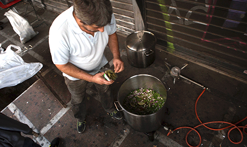 Το βραδινό τραπέζι για τους διαδηλωτές, με φασολάδα, φακές και σαρδέλες έστησε το Συνδικάτο Επισιτισμού – Τουρισμού – Ξενοδοχείων Αττικής, μαζί με επιχειρησιακά σωματεία του κλάδου, έξω από το υπουργείο Εργασίας κατά τη διάρκεια της κατάληψης στις 15 Οκρώβρη 2015.
