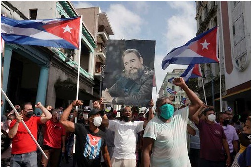 Και έρχονται σήμερα αυτοί που επέβαλαν και συνεχίζουν το δολοφονικό εμπάργκο και μιλούν για «ανθρωπιστική κρίση» στην Κούβα και δήθεν αγωνιούν για τη «Δημοκρατία και τα ανθρώπινα δικαιώματα» των Κουβανών. Οι ίδιες δυνάμεις που δολοφονούν λαούς σε Ιράκ, Αφγανιστάν, Παλαιστίνη, όπου οι ρατσιστικές δολοφονίες μαύρων από αστυνομικούς είναι καθημερινό φαινόμενο. Όπου μέσα στην πανδημία ψήφισαν νόμους για την ποινικοποίηση της απεργίας και της συνδικαλιστικής δράσης και κλείνουν νοσοκομεία γιατί είναι περιττά, οι ίδιες δυνάμεις δήθεν νοιάζονται για τα δικαιώματα του λαού της Κούβας. Η υποκρισία και τα ψέματα των ιμπεριαλιστών είναι καλυμμένες με το αίμα παλαιότερων επεμβάσεών τους για τη «Δημοκρατία και τα Ανθρώπινα Δικαιώματα».