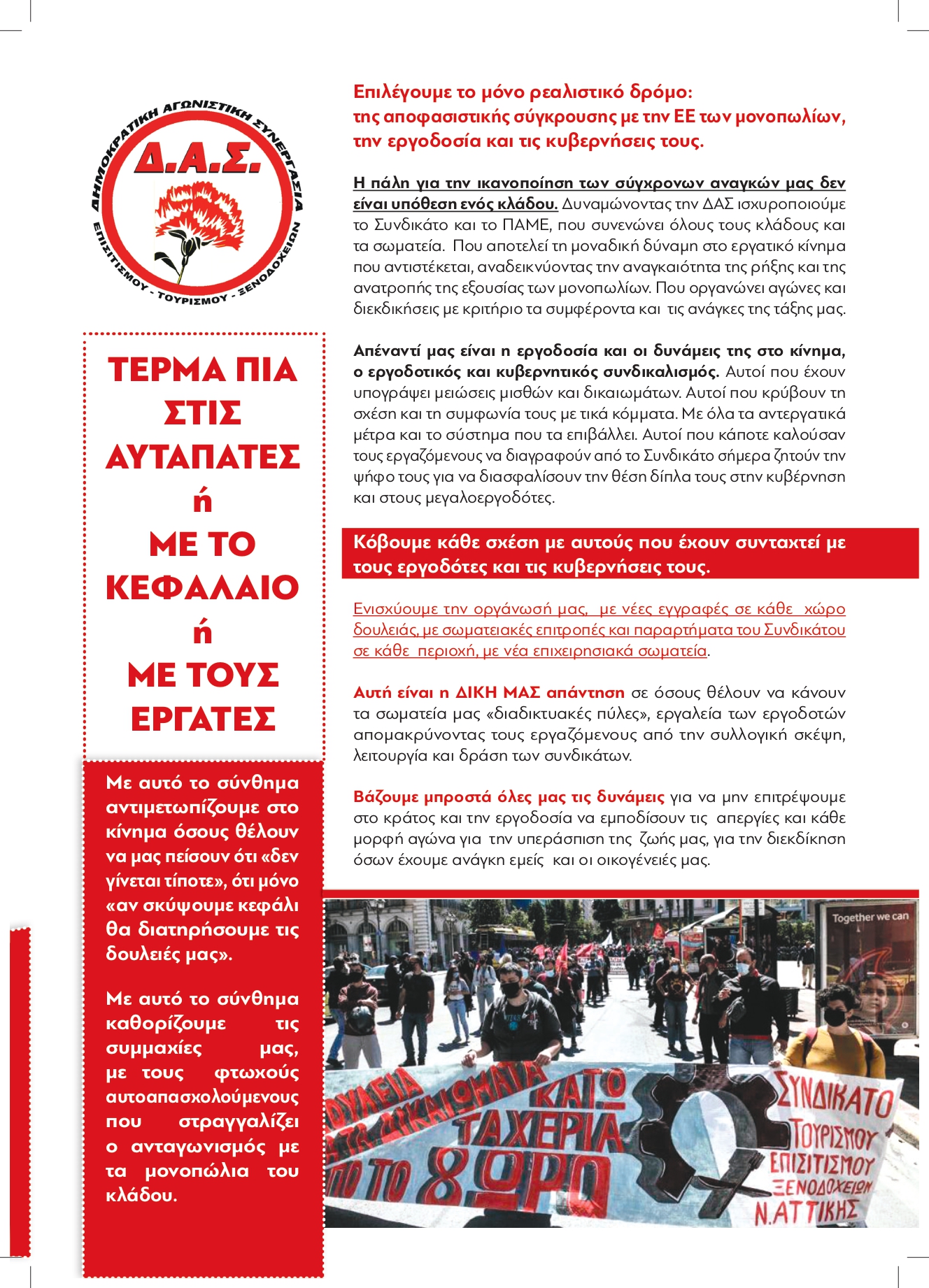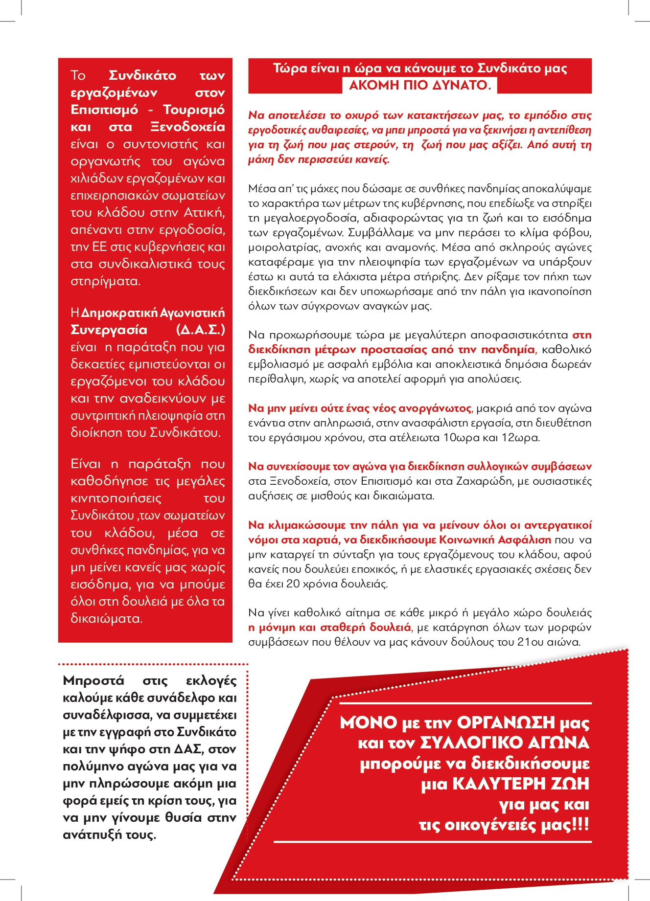 Η διακήρυξη της ΔΑΣ Επισιτισμού – Τουρισμού: Δυναμώνουμε την οργάνωση και τους αγώνες μας!